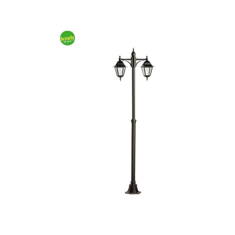 Lampione nero per esterno ed interno a e luci con struttura in pressofusione di alluminio e trattamento anticorrosivo. Diffusori in vetro trasparentee copri portalampada di alluminio in tinta. Portalampada E27. Alimentazione max 60 Watt. La classe di protezione è la IP44.