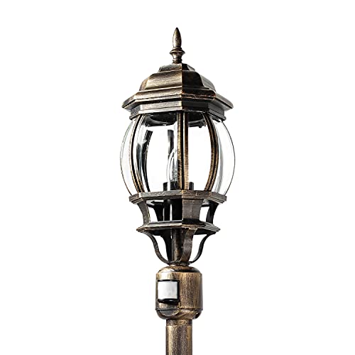 Lampione per esterni in stile rustico ed elegante realizzata in alluminio e vetro. Grazie al sensore di movimento è la scelta perfetta per il vostro giardino, terrazzo e cortile.