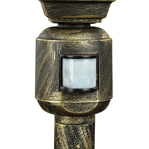 Lampione da giardino con sensore di movimento dal design rustico nero-dorato a forma di lanterna E27 ideale per giardino vialetto ingresso terrazzo