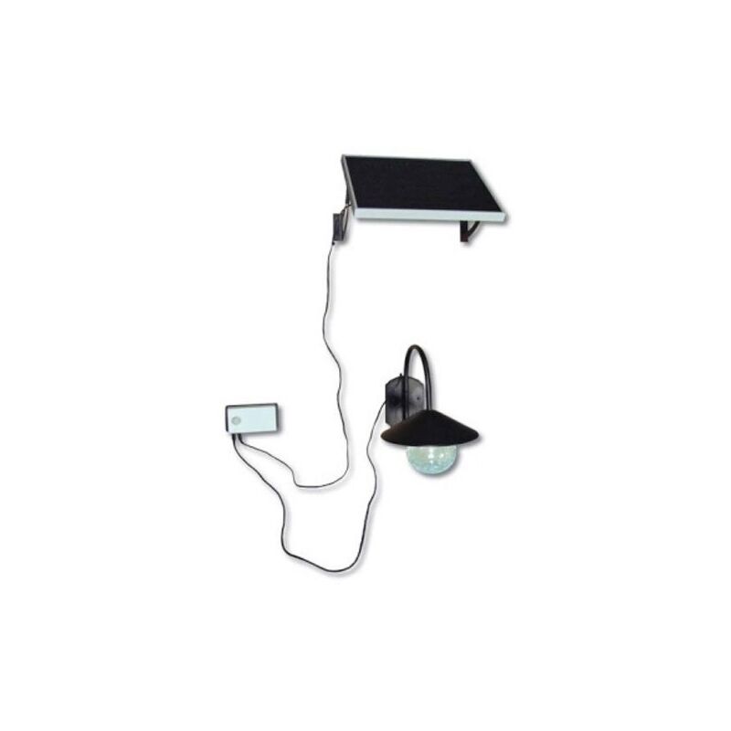 Lampione Radiosa Applique studiata per essere fissata a muro, design elegante per illuminazione esterna di case e giardini. Realizzato con pannello solare amorfo di 3 watt in alto, accumula energia durante il giorno e riesce a stare acceso per massimo 10 ore. Si accende grazie al crepuscolare e al passaggio di persone, ottimo da avere all'entrata di casa. Lo stesso lampione può anche essere utilizzato internamente ad una casetta in legno da giardino posizionando il pannello solare sul tetto all'esterno. In questo modo anche senza portare energia elettrica alla casetta, la stessa potrà essere illuminata internamente senza alcun costo di gestione. Illuminazione di giardini ed esterno casa nel massimo rispetto della natura. Caratteristiche Tecniche: Dimensioni pannello (LxPxH): 35.5x31x26 cm Dimensioni lampada: 37.5x35.5 cm Materiale: acciaio verniciato Pannello solare: amorfo 3 watt Sensore di rilevamento presenza a infrarossi In crepuscolare 1.2 watt Al passaggio 3 watt 3 super LED