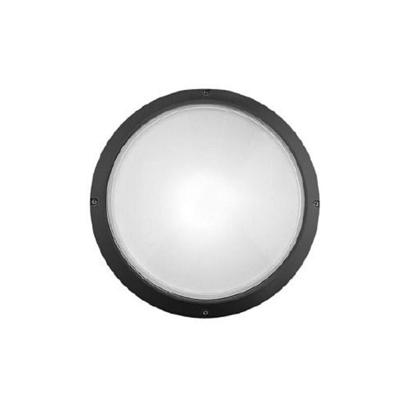PLAFONIERA TONDA IP54 E27 230V S/LAMP. NERA Plafoniera da parete o soffitto per esterno Materiale: Corpo e diffusore in policarbonato Non Incluso: Lampada Potenza 75W MAXIP IP 54PKG 1/10 Tensione 230VFinitura nero Attacco E27 Dimensioni E27 Colore: Nero