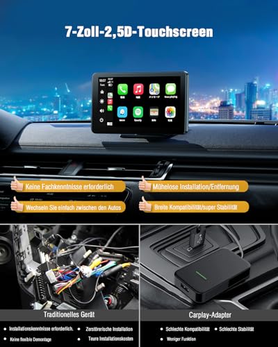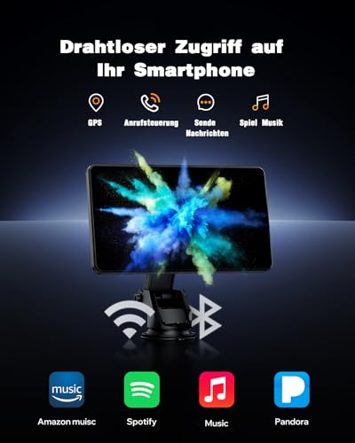 Lamto Wireless Carplay&Android Auto,7 Pollice HD Carplay Schermo Senza Fili, Assistente Vocale/Bluetooth 5.0/Wifi/AirPlay/AUX/Trasmettitore FM/Navigazione GPS