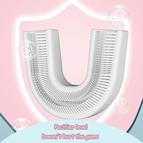 Pulizia dei denti delicati: il nostro spazzolino da denti a forma di U adotta una spazzola in gomma morbida e le setole morbide non danneggiano le gengive del bambino, in modo che il bambino non resista alla spazzolatura.