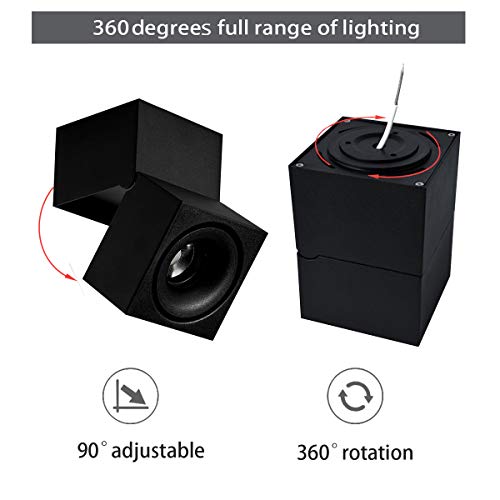 LANBOS 15W Spot light,Faretti LED da soffitto orientabile/LED Lampada da Parete/Camera da letto, Soggiorno, Ufficio/aluminum/3000K Bianco caldo/10x 15CM (Nero+Bianco caldo)