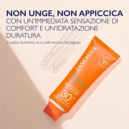 Lancaster Sun Sport Invisible Face Gel - Protezione solare viso in gel SPF30, Texture Leggera ed Invisibile Applicabile su Pelle Asciutta o Bagnata, 50 ml