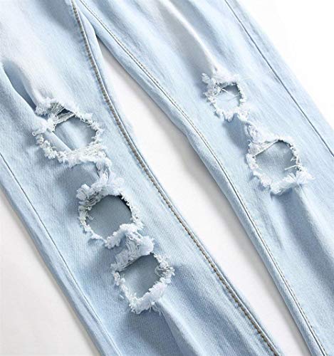 Lanceyy Jeans Uomo Effetto Invecchiato Slim Fit Denim Tapered Stile Semplice Jeans Stretch Pantaloni Vintage Rose Ricamo Pantaloni Jeans (Color: LichtBlau, Size: 30)