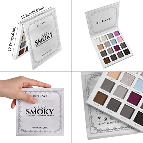 DE'LANCI Tavolozza Ombretto Grigio Neutro,16 Colori Palette Ombretto Grigio Fresco Fumé, Bianco Nero Argento Brillante Palette Ombretto,Ombretto Grigio Opaco per Occhi Blu Verdi