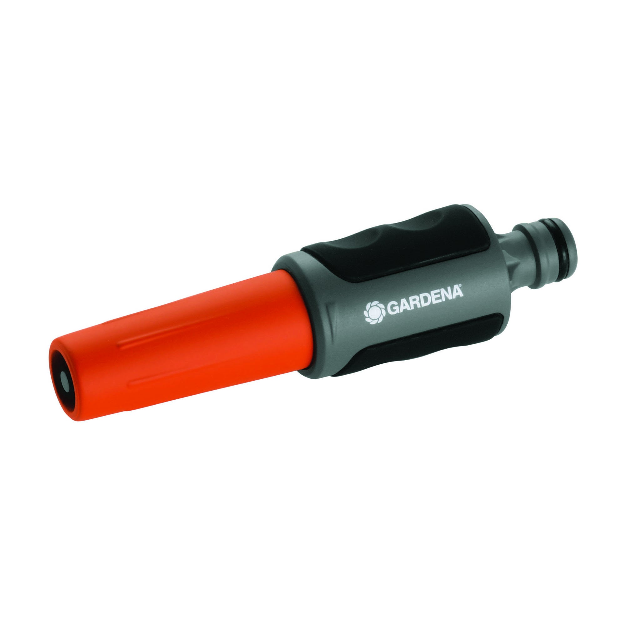 In plastica e gomma. Ideale per irrigare fioriere, aiuole e vasi anche in altezza. Resiste al gelo, più resistente nel tempo