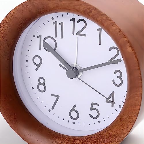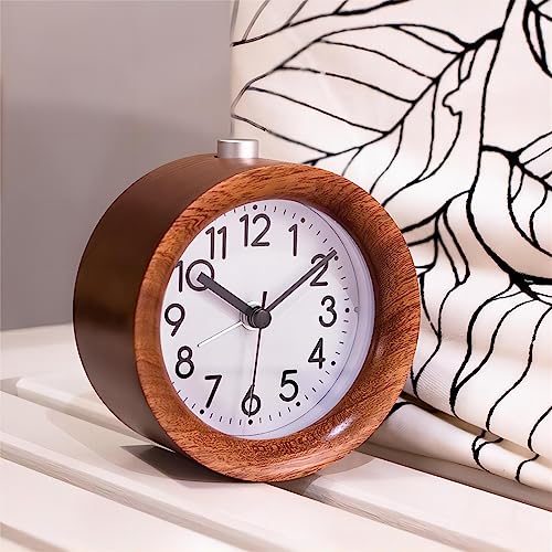 Lancoon Sveglia Rotonda In Legno, Analogica Silenziosa Con Numeri Arabi, Funzione Snooze A Batteria, Facile Da Impostare Per Scrivania, Camera Da Letto, Comodino (Marrone)
