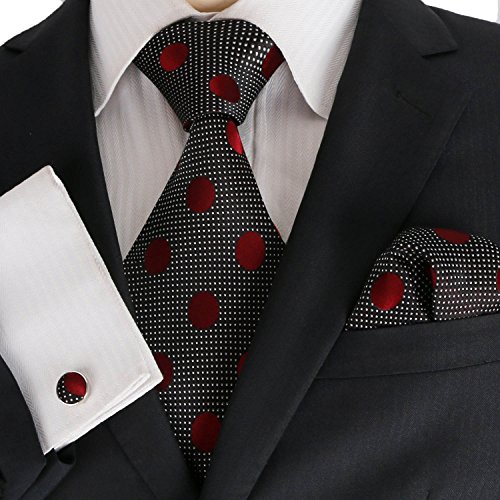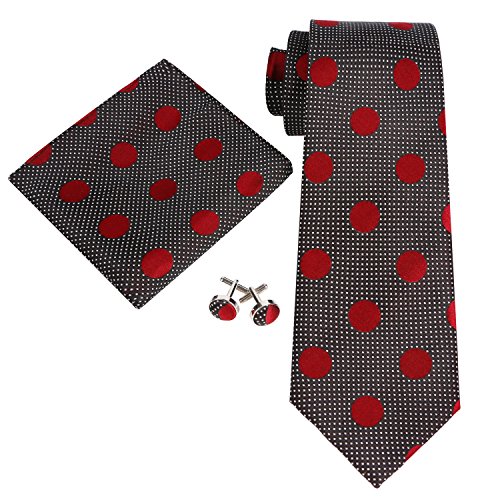 Landisun - Set di cravatte in seta da uomo, con cravatta+fazzoletto+gemelli
