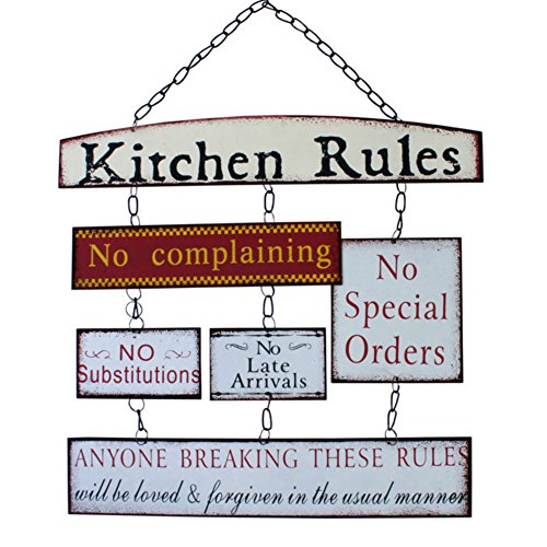 Kitchen rules da parete Targa da parete. Fatto di metallo/Tin. sospeso con catene.