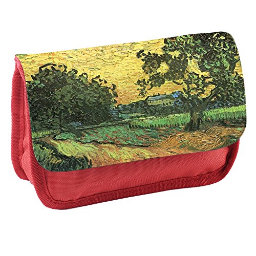 Van Gogh Landscape With Castle Auvers At Sunset, Rosso Scuola Bambini Sublimazione di alta qualità Polyester Astuccio Matita Caso con Design Colorato. 21x13 cm.