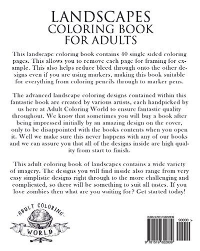Landscapes Coloring Book for Adults: An Advanced Adult Coloring Book of 40 Realistic Landscapes by various artists: Volume 1