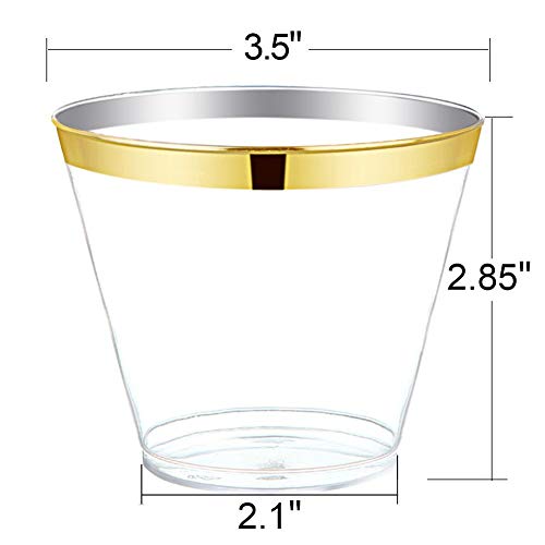 Landyta 255 ml 25 pezzi Bicchieri di Plastica Rigida Riutilizzabili Dorato Eleganti Bicchieri in Plastica Trasparente usa e Getta per Matrimoni, Feste, Eventi