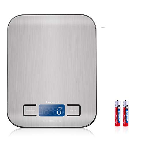 Laneco DS 01 Bilancia da cucina digitale (Include Batterie, funzione tara, Display LCD, precisione fino a 1 g) argento