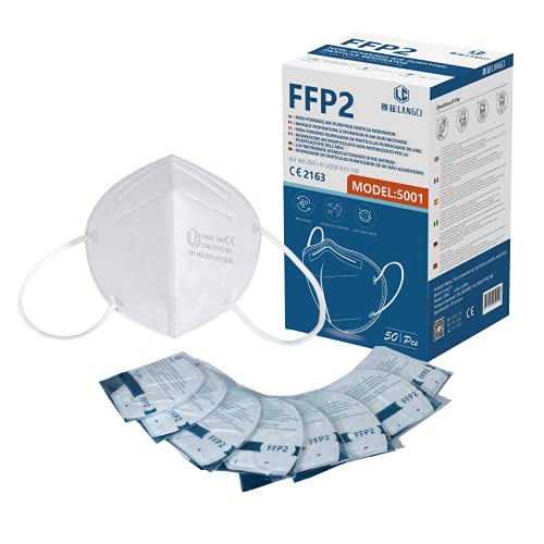 LANGCI Maschera FFP2 Maschera protettiva - Norma CE EN 149: 2001 + A1: 2009 FFP2 NR (Bianco x 50)
