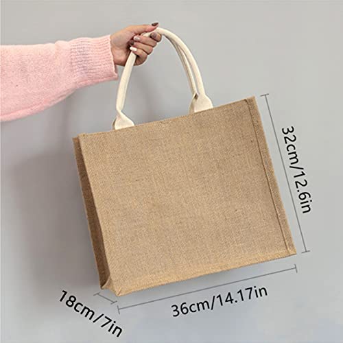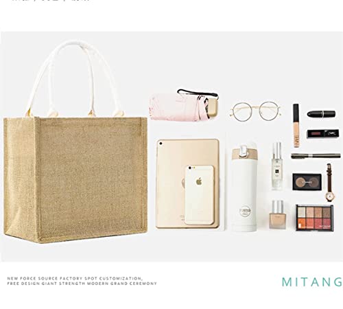 Langjiao Borsa per la Spesa Portatile, Borsa per la Spesa in Juta Portatile Borsa per la Spesa Borsa Tote Marrone Chiaro. Borsa della Spesa Squisita Ed Ecologica
