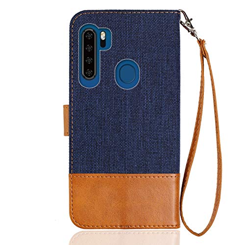 Langlee - Custodia per Blackview A80 Pro, in pelle PU, con scomparti per carte di credito e monete, chiusura magnetica, cinturino da polso, blu