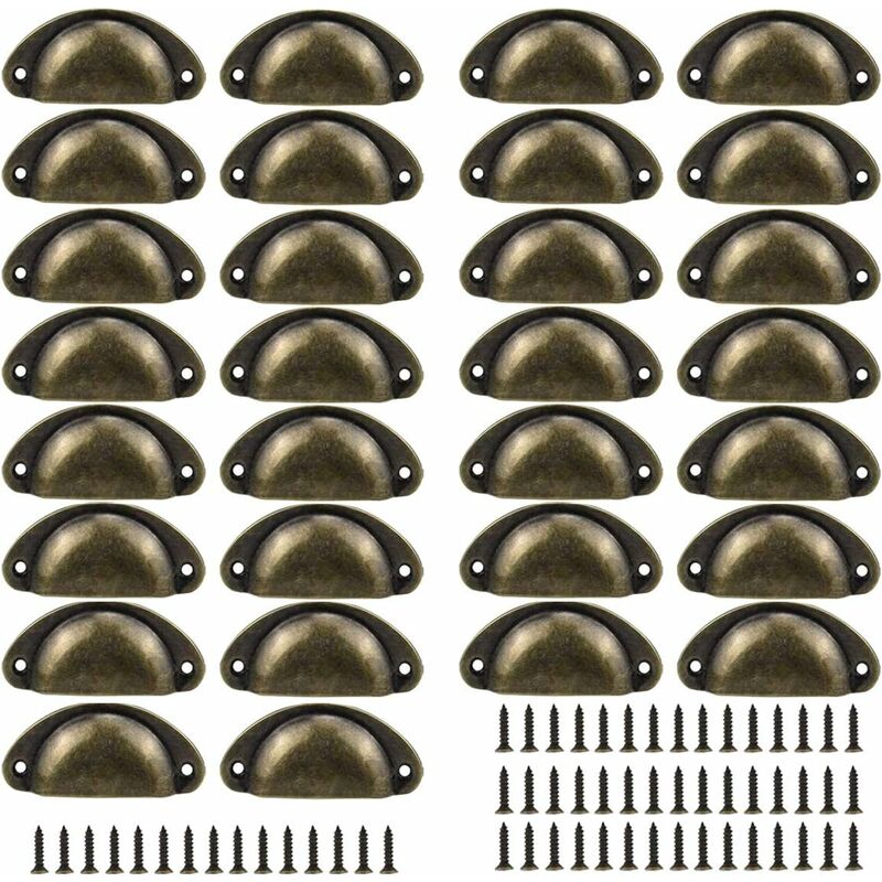 Lunghezza da foro a foro: ca. 66 millimetri. Il pacchetto include: 30 maniglie per porte vintage, 60 viti. Ogni cassetto è dotato di viti, facile da installare. Valore eccellente. Ideale per personalizzare ante, cassetti, pensili, angolari e pensili in cucina, camera da letto, bagno, corridoio e altri mobili applicabili. Maniglie antiche per uso domestico o commerciale. Descrizione prodotto Set di maniglie vintage, design antico per mostrare il tuo gusto speciale. Ideale per personalizzare ante, cassetti, madie e pensili. Materiale delle maniglie dell'armadio: ferro. Dimensioni delle maniglie: circa 81 x 35 mm (L x P). Lunghezza delle maniglie delle porte: ca. 66 millimetri. Colore pomelli porta: bronzo 30 maniglie in metallo. 1 set di viti di montaggio.