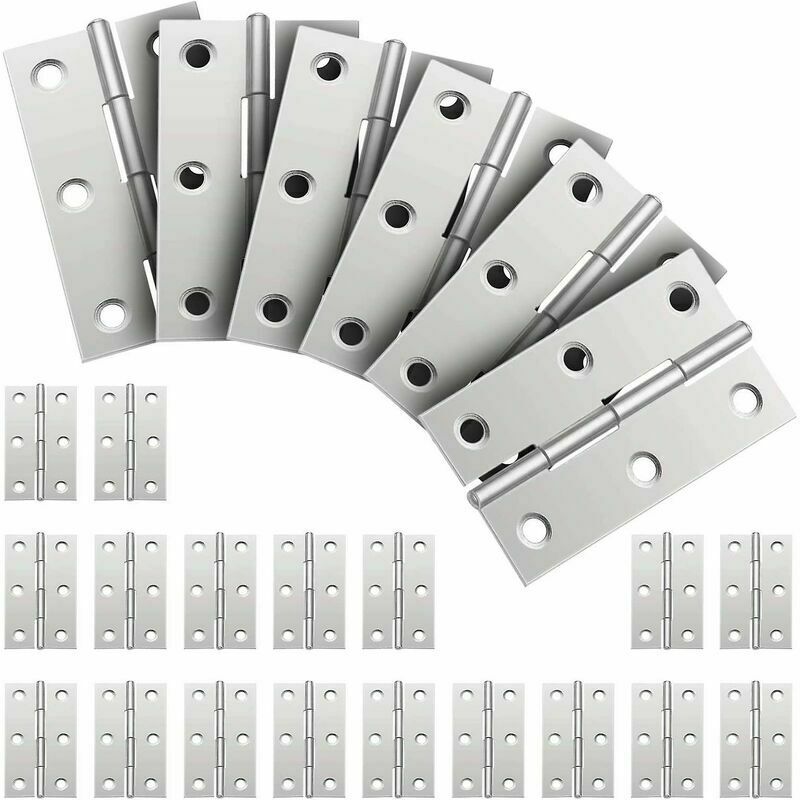 Descrizione del prodotto Argento. Materiale: acciaio inossidabile. Dimensioni: 44*31*1.0 mm Peso: 10 g/pezzo La confezione include un 24* cerniera 1.Design con 6 fori di montaggio: cerniera in acciaio inossidabile da 24 pezzi, cerniere in acciaio inossidabile con foro di posizionamento scientifico e asse stabile, che possono bilanciare il peso e ridurre il rumore, funzionare senza intoppi. 2.Realizzato in acciaio inossidabile di alta qualità: La cerniera è realizzata in acciaio inossidabile di alta qualità, il materiale è resistente e durevole. Le cerniere in acciaio inossidabile sono resistenti all'umidità e all'umidità;