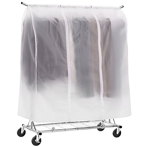 COPERTURA TRASPARENTE: Coat rack con copertura trasparente bianca eco-compatibile in PEVA traspirante e biodegradabile copre completamente vestiti per proteggerli dall'esposizione alla polvere