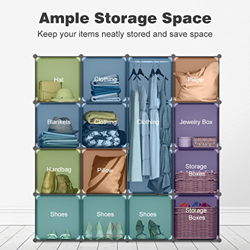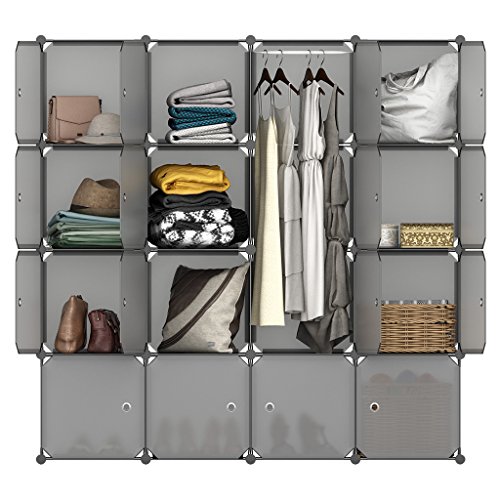 LANGRIA 16 Cubi Armadio Modulare con Ante Separatori Scaffali per Moduli Armadio Scarpiera per Vestiti Scarpe Giocattoli Forniture Scolastiche Accessori (16 Cubi, Grigio Trasparente)