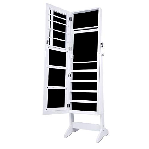 LANGRIA Armadio Specchio Portagioie Gioielli a Chiave Stand Bloccabile con Specchio Armoire Organizer Bianco