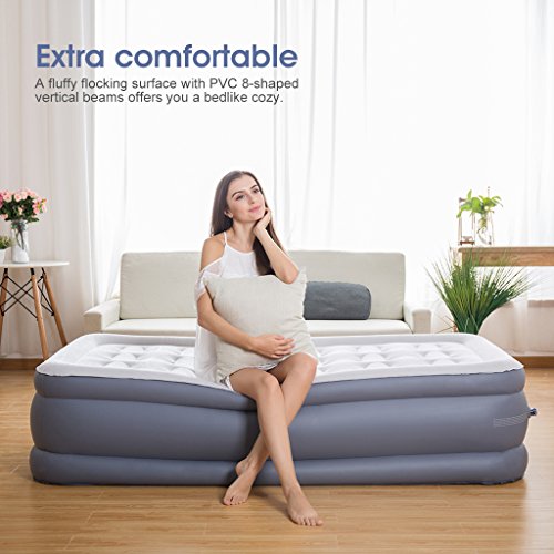 LANGRIA Camping Materasso in Tessuto Gonfiabile con Velluto Elettrico con Valvola Pneumatica Extra Letto Gonfiabile per Escursioni in Carovana Bag Trasporto Incluso (190 x 99 x 45 cm, 1 Persona)