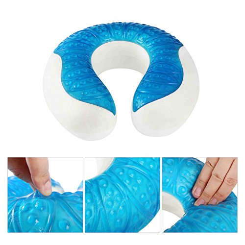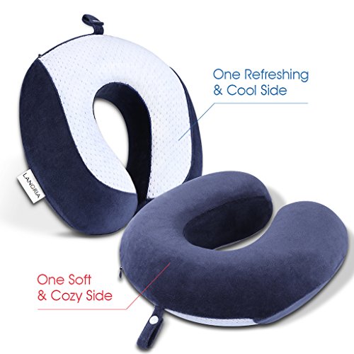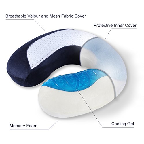 LANGRIA Cooling Gel Cuscino per Cervicale a Memoria di Forma per Aereo, Auto, Treno, Casa, Ufficio, Sonnecchiando, Lettura e Tempo Libero, Blu Marino