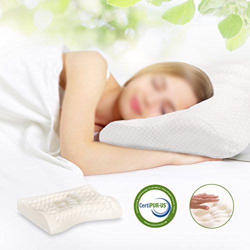 LANGRIA Cuscino in Memory Foam Cuscino Curved Cervicale con Convolu Disegnata da Printed Eggc Rate Staccabili, Cert Ipur US Certificato, (21,7 × 15,7 × 3,3/3,5 Pollici) Bianco