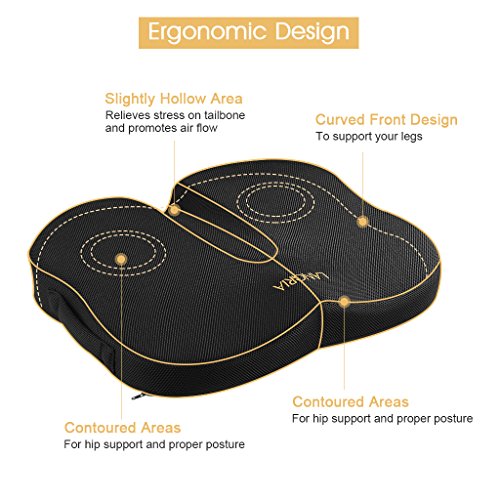 FORMA ERGONOMICA: Il cuscino del sedile ha una forma anatomica per cullare meglio il vostro corpo, promuove sano postura seduta e l'allineamento della colonna vertebrale corretta, fornendo supporto anca e alleviare il mal di schiena da seduta prolungata