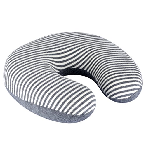 LANGRIA U Cuscino da Viaggio Cuscino Cervicale - Schiuma Memory Ergonomica, Soffice e Confortevole per Aereo,Viaggio (Grigioe Bianco Strisce)