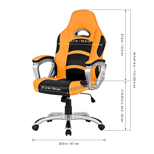 LANGRIA Sedia da Gioco Computer con Schienale Alto, Sedia Ergonomica da Ufficio in Pelle di PU con Poggiapiedi e Braccioli Morbidi, Altezza della Seduta Regolabile, schienale inclinabile, girevole da 360 gradi, nero e arancione
