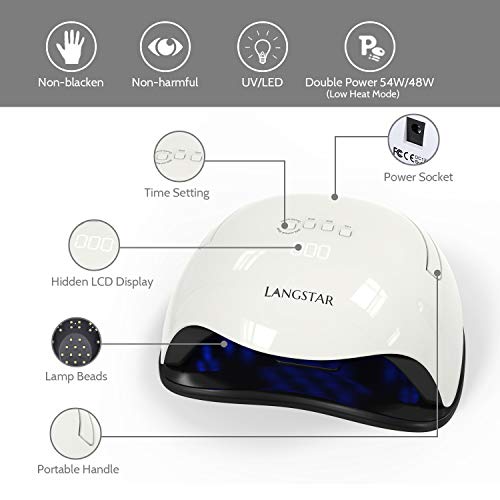 LANGSTAR Lampada UV LED Unghie, Portatile Nail Lamp UV LED Semipermanente Fornetto Unghie Gel Polimerizzazione Rapida (54W/48W)