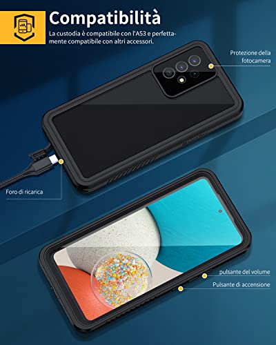 Lanhiem Cover Compatibile con Samsung Galaxy A53 5G Impermeabile [IP68 Waterproof e 360 Gradi Protezione] Custodia Subacquea Antiurto Rugged con Protezione dello Schermo per Samsung A53 6,5",Nero