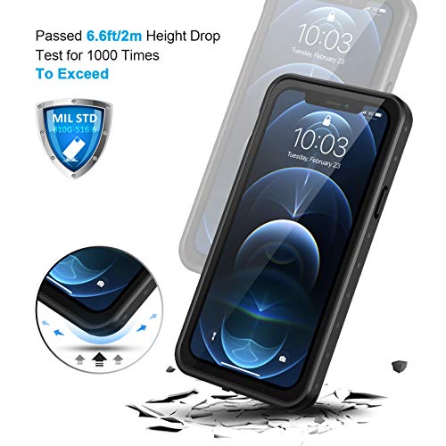 Lanhiem Cover iPhone 12 PRO (6.1") Impermeabile 5G[IP68 Certificato Waterproof] Custodia con Protezione dello Schermo Antiurto Antipolvere AntiGraffio Subacquea Caso per iPhone 12 PRO,Nero