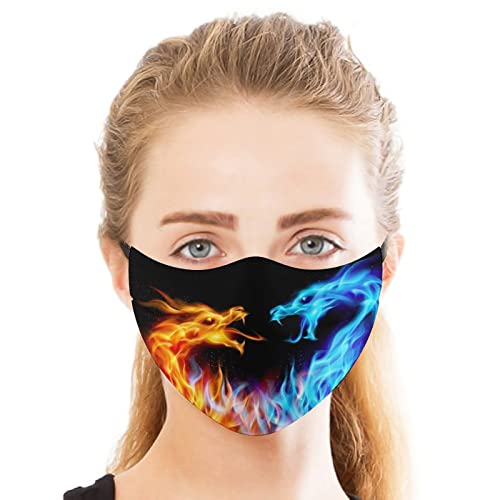 LANIY Draghi di Fuoco di Ghiaccio Digitali Mascherina Unisex in Cotone Riutilizzabile, Lavabile, Antiappannamento E Antipolvere/2Pc