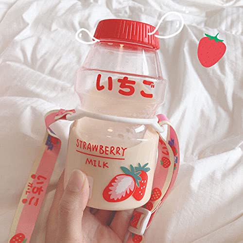 Lankater Bottiglia Kawaii Strawberry Acqua Portatile della Prova della Perdita Bottiglia Trasparente Potabile per Ragazza dei Bambini 480ml a Caso