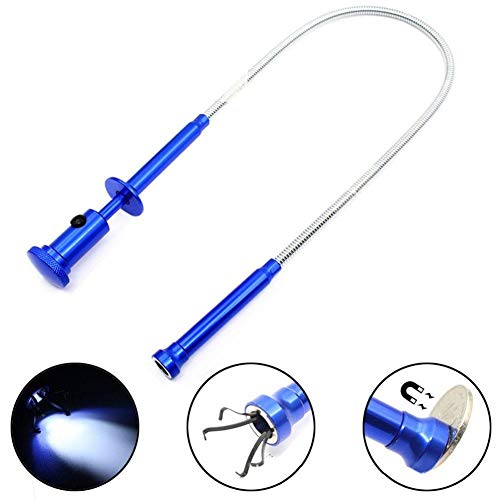 Lankater Magnetic Grapple Gripping Claw Flexible Home Toilet Gadget Pick Up Tool Sewer Cleaning LED Light Spring Rod Iron Stretchable