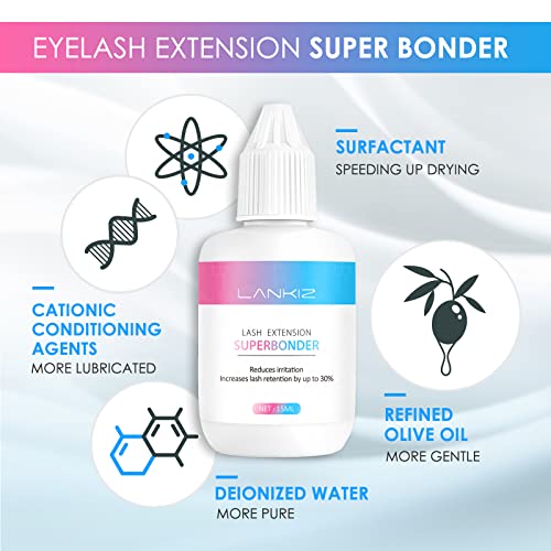 LANKIZ Lash Bonder per la colla di estensione delle ciglia, ciglia Extension Bonder, Superbonder Sealant, riduce l'irritazione, Increas Lash Retention fino al 30%, 5.5 oz/15ml...