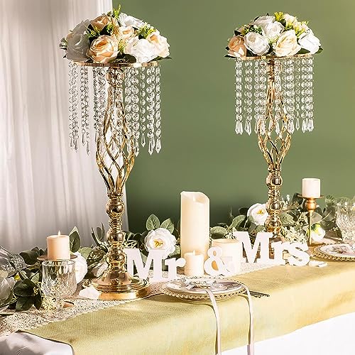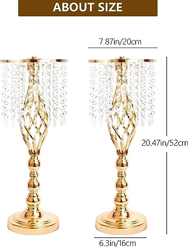 LANLONG 2pcs metallo portacandele in metallo piombo tavolo da strada centrotavola stand pilastro candeliere per la cerimonia nuziale candelabri fiori vasi (oro, 52cm)