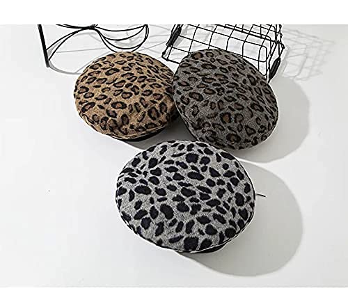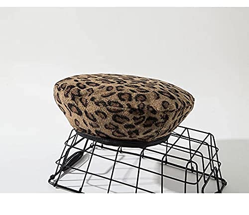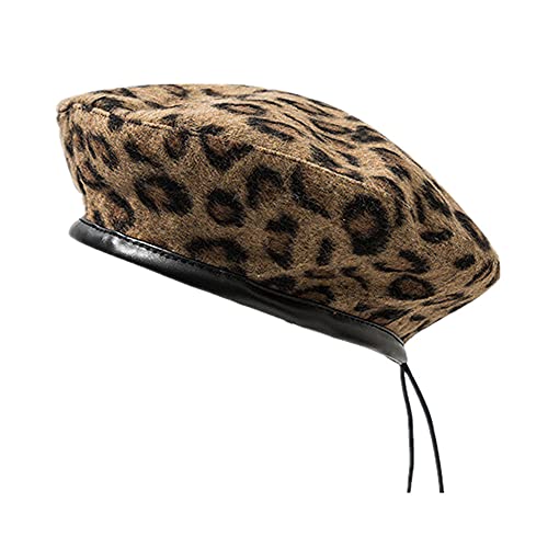 Lanly Berretto da basco francese, da donna, con motivo leopardato, regolabile, per autunno e inverno, caffè, t