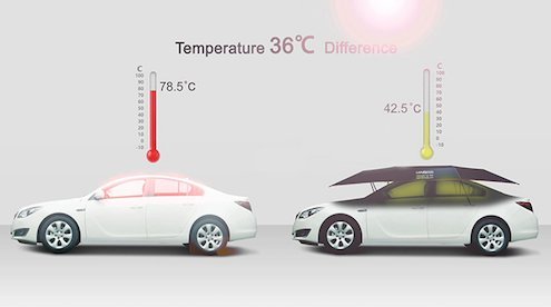 Mantiene la vostra auto fresca: gli interni dell'auto diventano caldi e fastidiosi se esposti al sole per troppo tempo e bisogna fare uscire l'aria calda prima di entrarci. La tenda per auto Lanmodo risolve questo problema perché fornisce ombra per l' intero corpo dell'auto e protegge anche i vostri bambini dal calore. Nella stagione calda, la tenda per auto Lanmodo può raffreddare la temperatura dell'interno auto fino a 36 °C.