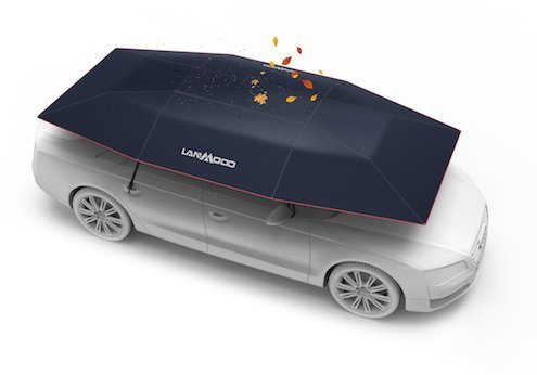 Lanmodo, tenda pieghevole automatica per auto, ombrello per auto wireless con telecomando, struttura in fibra di vetro antivento e parasole, abbastanza resistente contro la grandine e caduta di oggetti, impermeabile, facile da pulire, antifurto, batteria incorporata