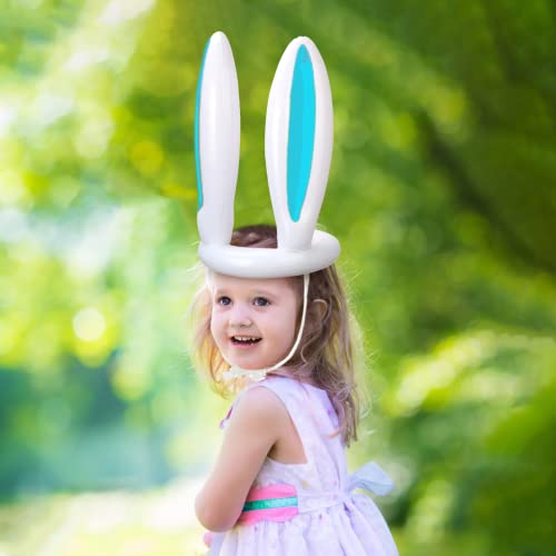 Gioco di Lancio di Pasqua: Il set di orecchie da coniglio gonfiabili viene fornito con 2 cappucci per le orecchie da coniglio, 12 anelli di lancio di diversi colori e una pompa ad aria (colore casuale), i bambini possono giocare a questo coniglio su prati, parchi, cortili e fascia per le orecchie in palestra. è un regalo ideale.