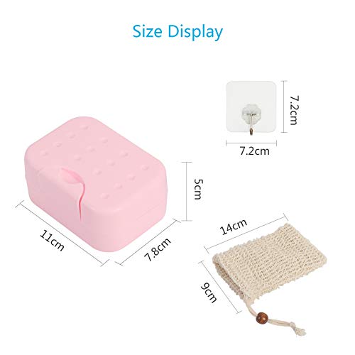 LANMOK Scatola di Sapone, 2 PCS Portasapone Portatile e 2 PCS Sacchetti di Sapone Esfoliante e 2 PCS Trasparente Gancio Appiccicoso Viaggio Campeggio Bagno Lavabo