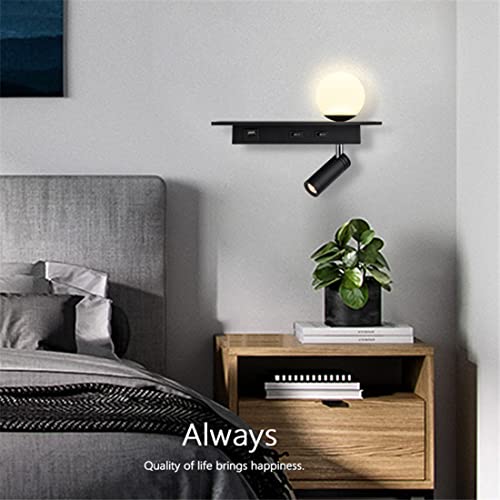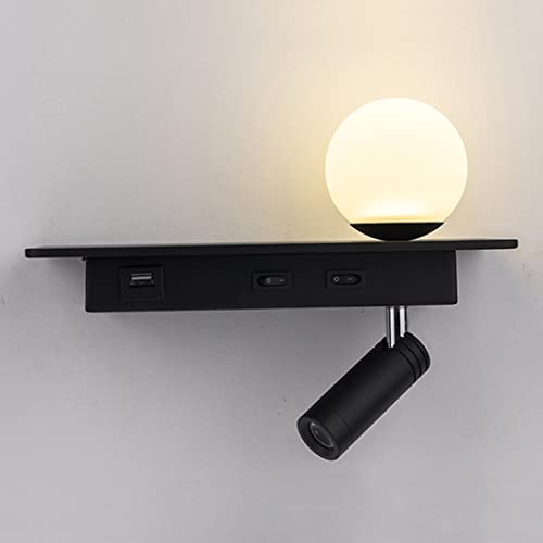 LANMOU Applique da Parete Interni con Porta di Ricarica USB, Lampada da Comodino LED con Interruttore, 3000K Applique da Lettura Ruotabile 350°, Lampada a Muro Camera da Letto Rotonda (5W+3W) (Black)