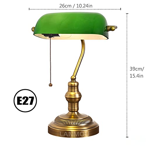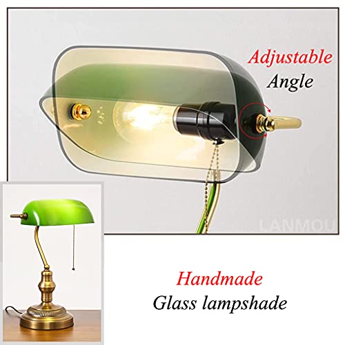 LANMOU Lampada da Banchiere Verde, Lampada da Tavolo Studio Ufficio Scrivania Retrò Lampada da Comodino Tradizionale in Metallo in Ottone Lucido, con Interruttore, Paralume in Vetro Verde, Attacco E27