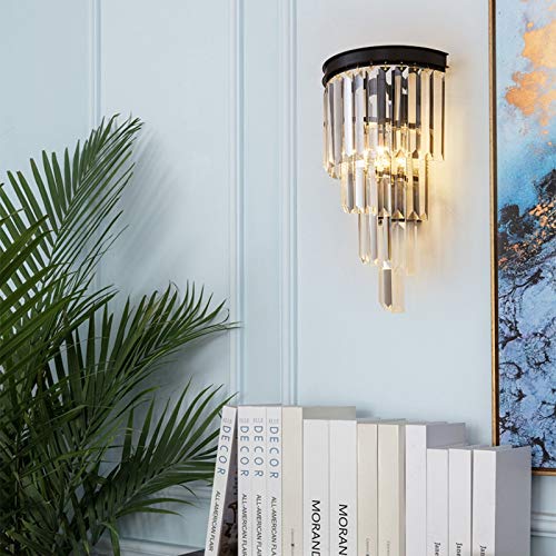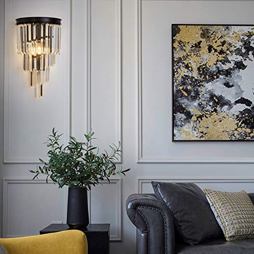 LANMOU Lampada da Parete in Cristallo Moderne LED 6W Applique da Parete Decorazione Interno E14 Lampada a Muro Camera da Letto Nero, per Comodino, Soggiorno, 3 Temperature di Colore, 42 x 25 cm