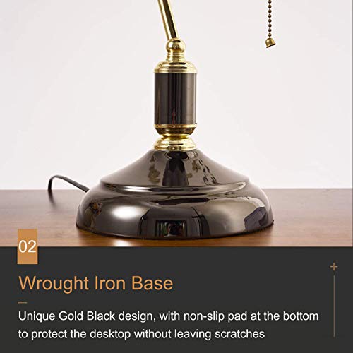 LANMOU Lampada da Tavolo Banchieri Retro, Studio Lampada da Scrivania/Lampada da Ufficio con Interruttore a Tirare, Paralume in Vetro e Base in Metallo, Lampada da Banchiere Tradizionale (Nero e Oro)